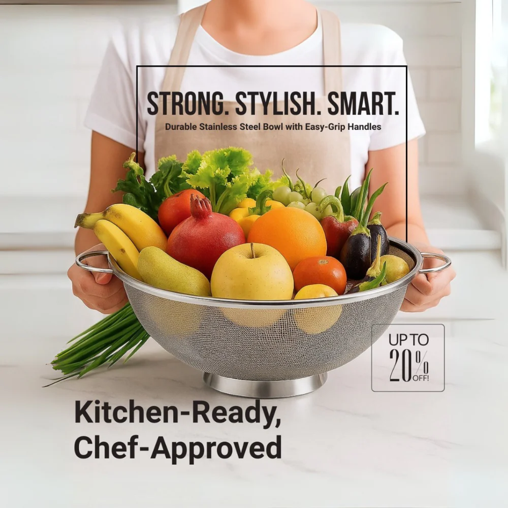 Make everyday cooking easier with our Multipurpose Colander Basket for Kitchen, designed to simplify washing, draining, and storing fruits, vegetables, pasta, and more. This kitchen essential saves time and reduces mess while keeping your ingredients fresh and clean.