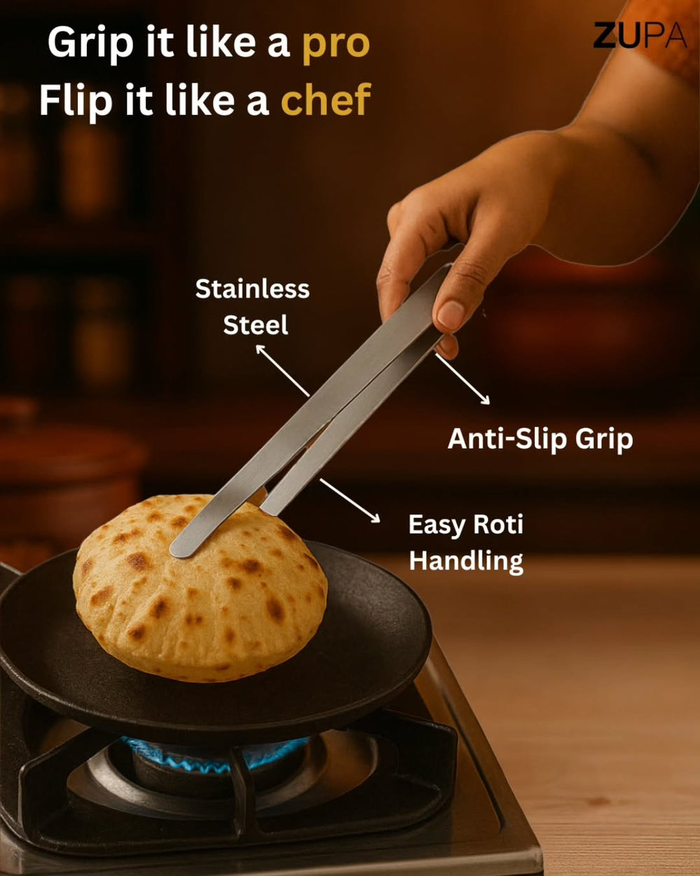 Zupa Stainless Steel Tong, Roti - Chapati Chimta, Chipya.